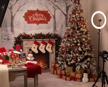 Oblida't de buscar estudis i fer cues! Portem la màgia del Nadal on ens necessitis. Muntem un fotocall espectacular amb temàtica nadalenca (decoració, atrezzo, llums... tot!), a punt per capturar els somriures més autèntics dels petits i joves.